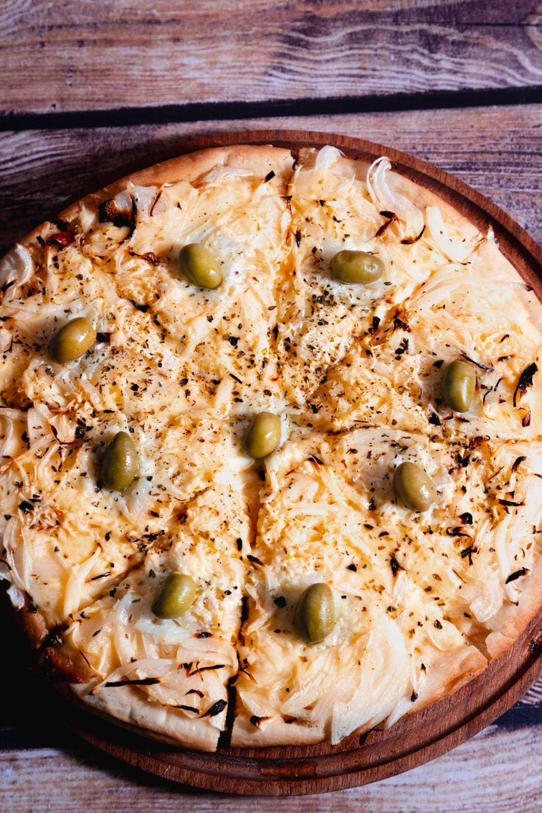 muzzarella, cebolla, orégano, aceitunas